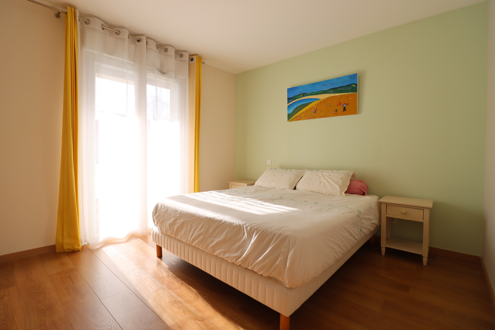 De même, la 2 ème chambre identique, exposée ouest, offre également un accès direct au balcon.